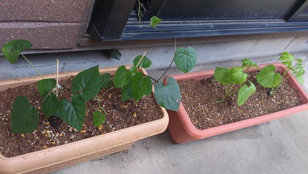 今、ゴーヤの方はだんだんツルが伸びてきていますが、