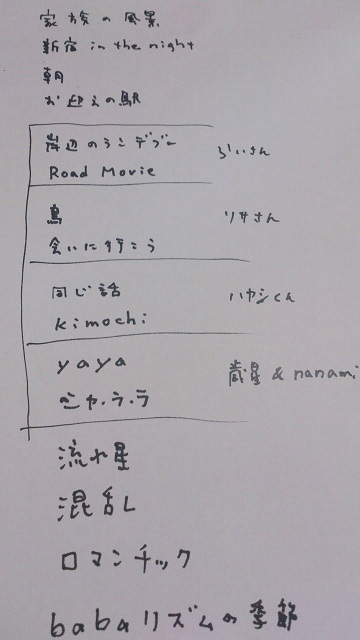ようやく当日のセットリストを、なぐり書き。
